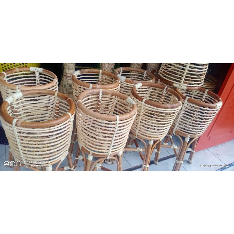 standing pot atau tempat vass rotan asli