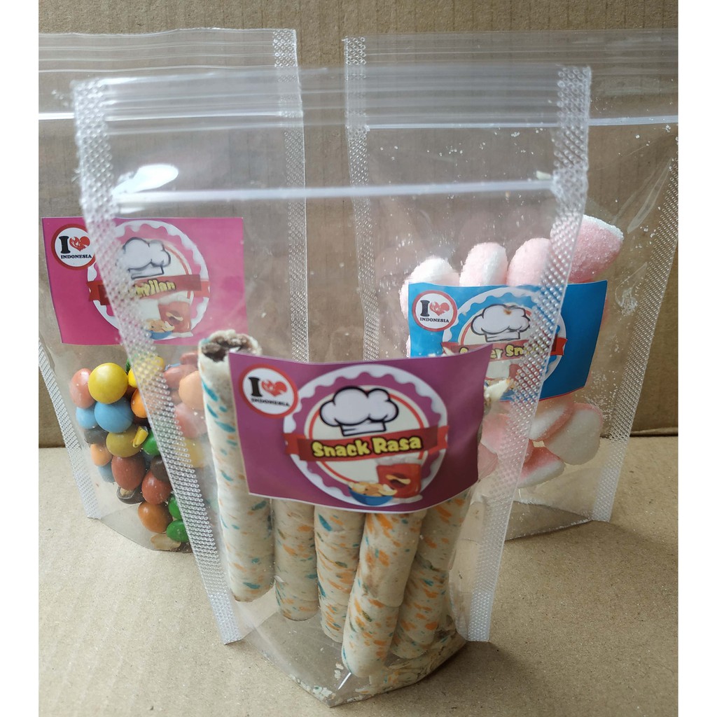 standing pouch gratis label stiker untuk snack ukuran 12 x 20 cm