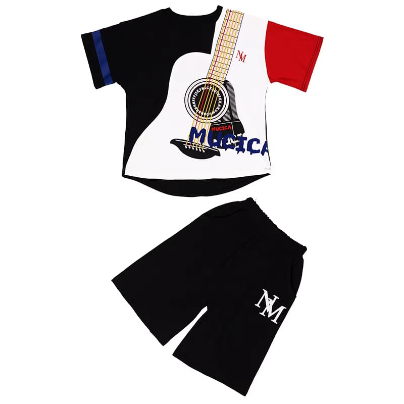 stelan anak anak baju dan celana motif gitar