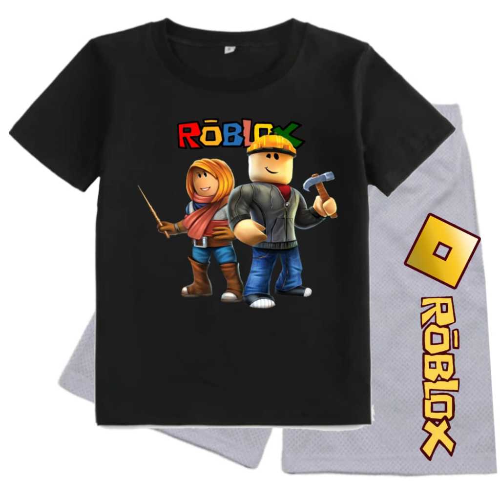 stelan kaos oblong santai lengan pendek celana pendek anak cowok-laki-laki motif ROBLOX bahan katun babytery usia-umur 2-4-6-8-10-12 tahun
