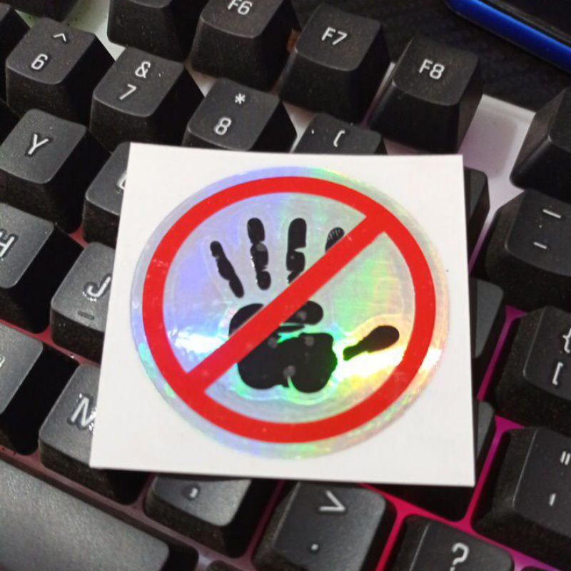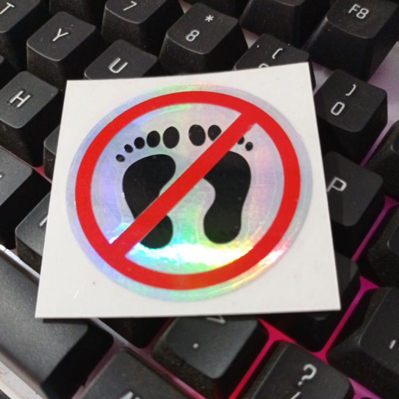 sticker cutting hologram dilarang foto,dilarang injak,dilarang pegang