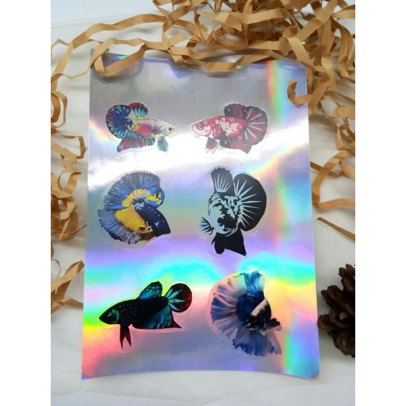 sticker hologram ikan cupang 6 pcs per set