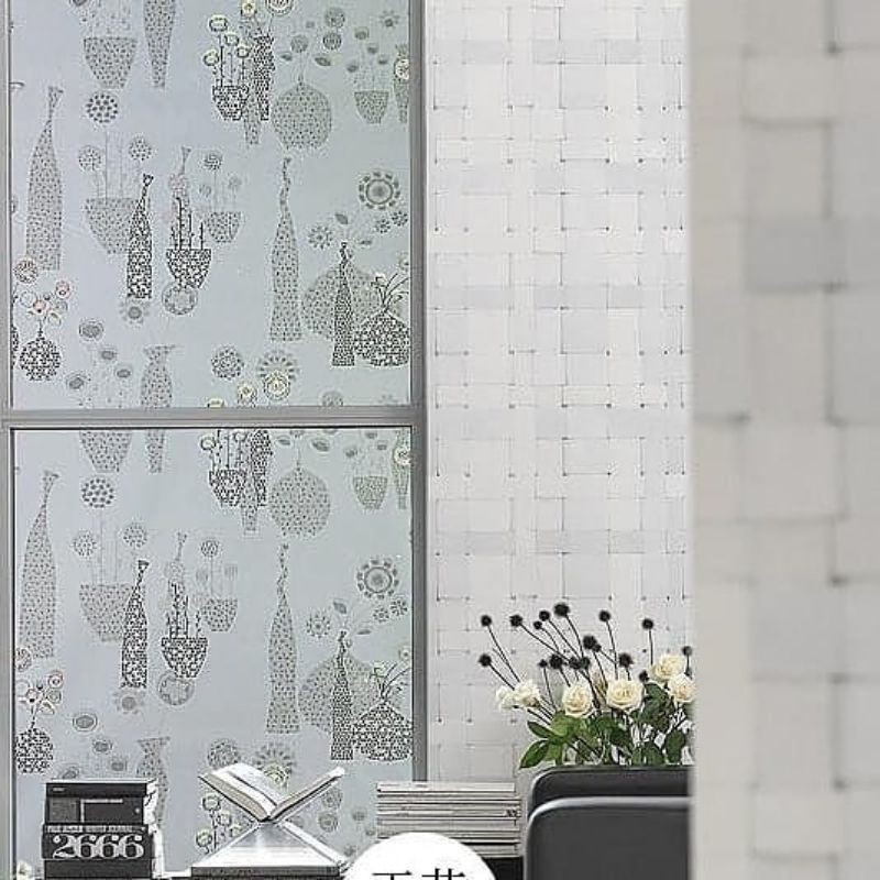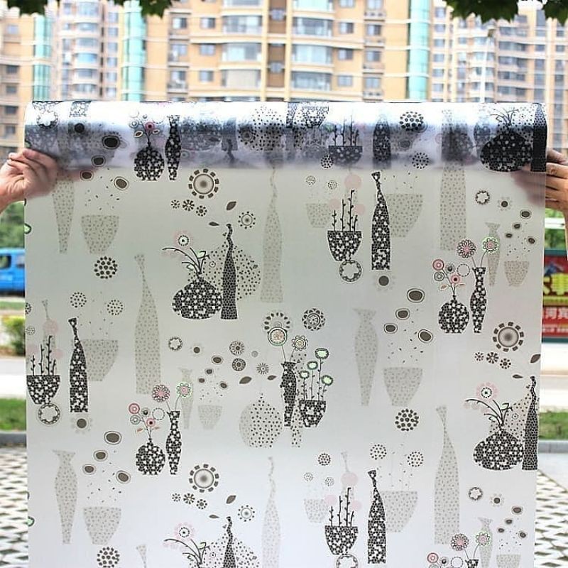 sticker kaca sunblast motif siluet vas bunga hitam