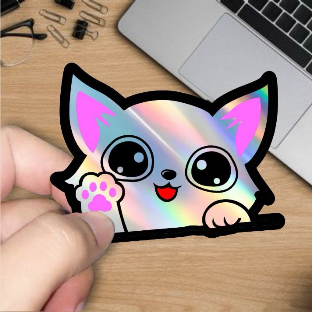 B80, sticker testur timbul, kucing lucu, stiker hp, motor, stiker putih dan hologram, hp, motir