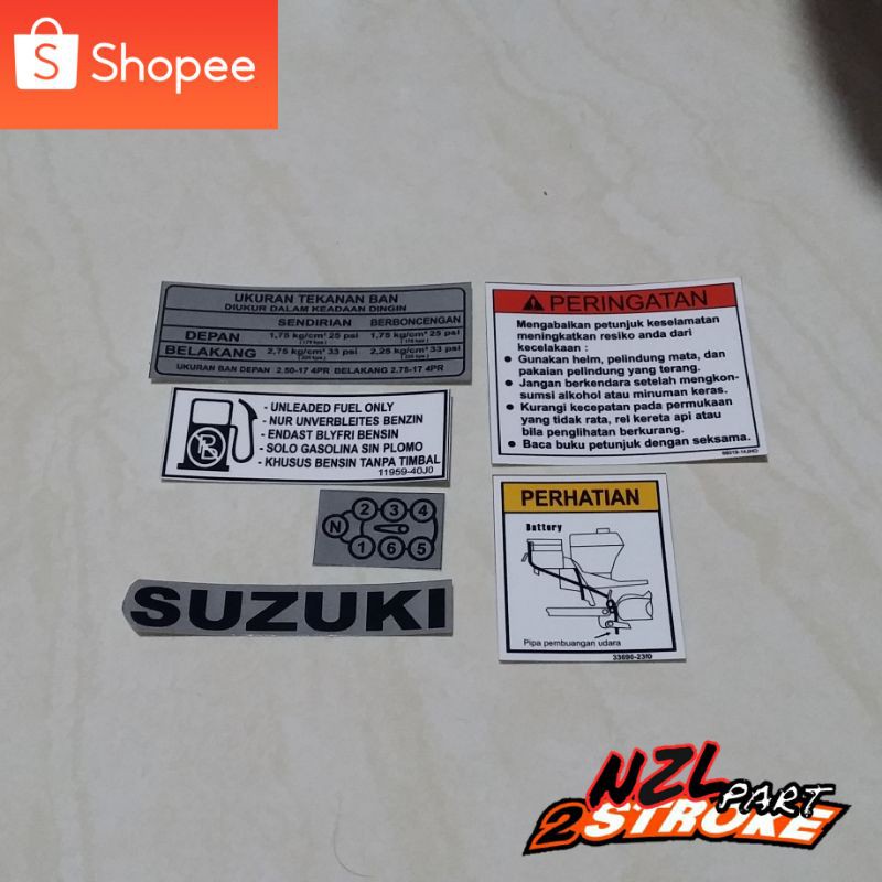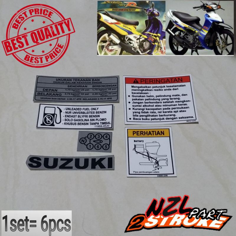 sticker stiker emblem logo frame body rangka peringatan perhatian suzuki satria 2tak 2t ru hiu lumba