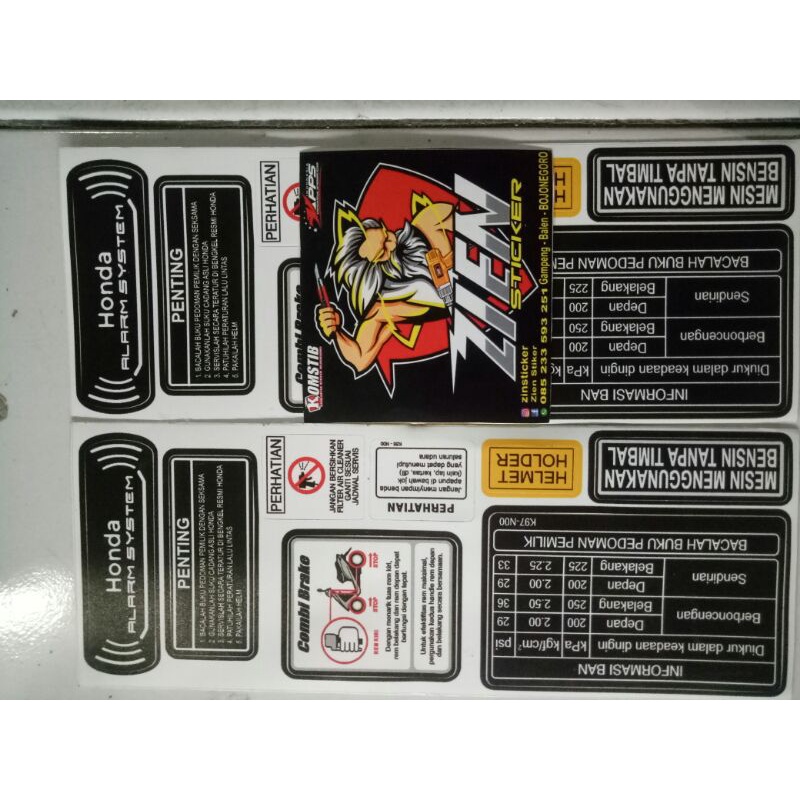 sticker warning kelengkapan Honda matic