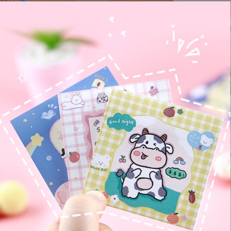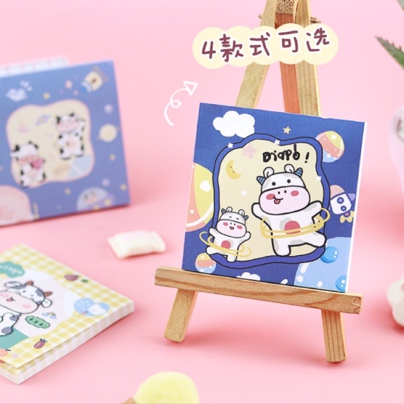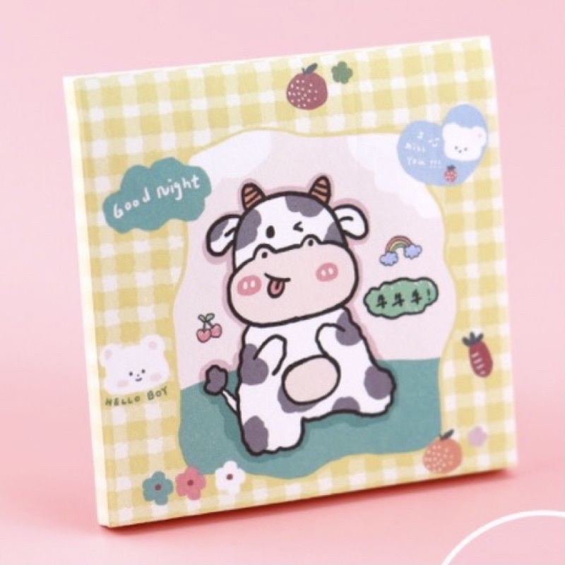sticky notes motif sapi warna pink ungu kuning biru untuk dekorasi dinding aesthetic catatan dan bullet journal [cozystuffid]