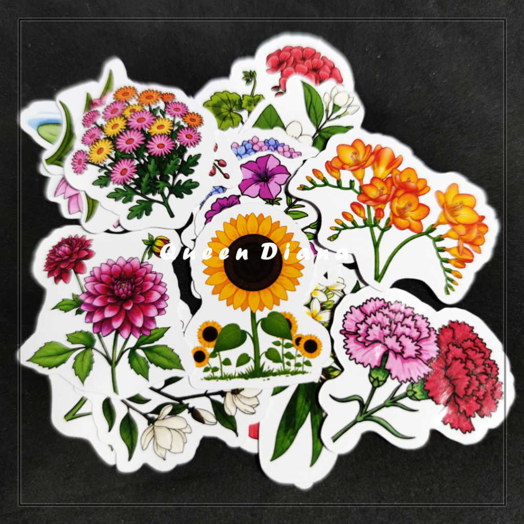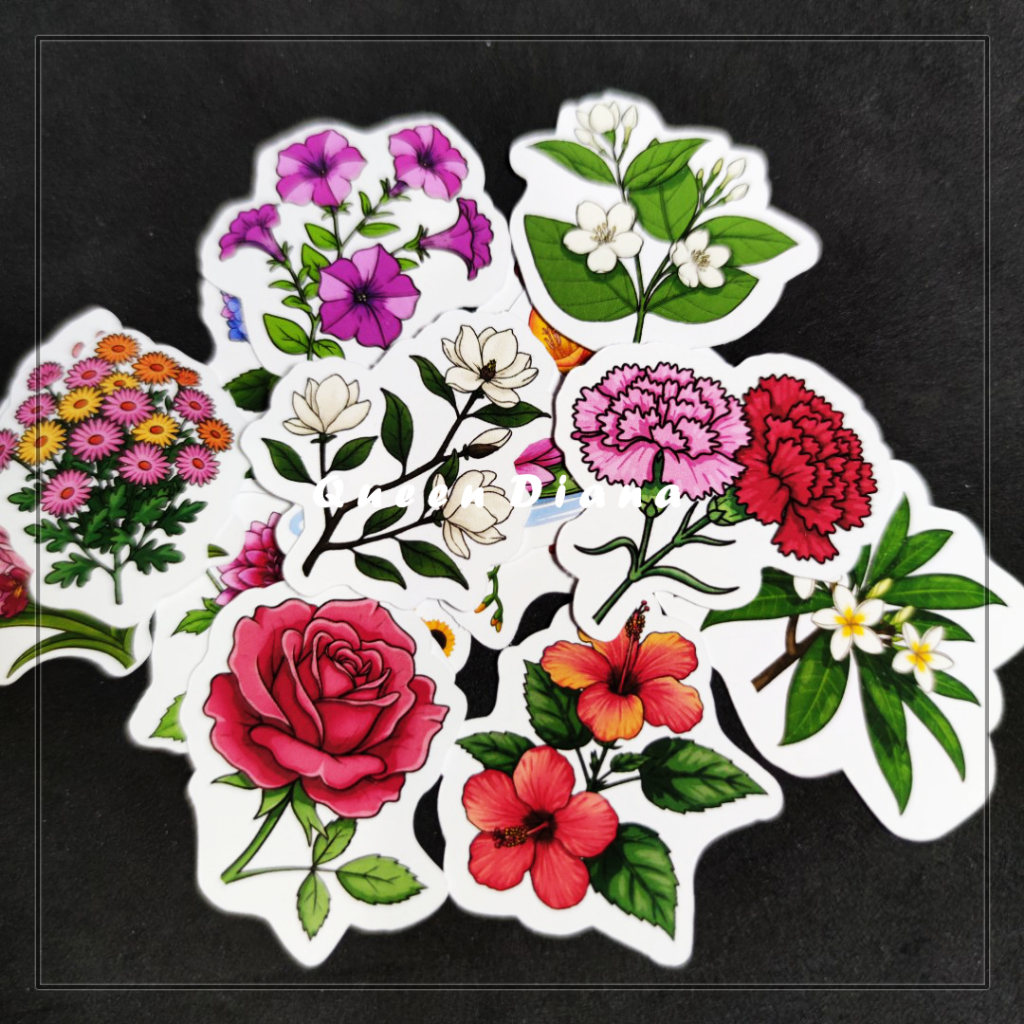 stiker bunga isi 15 pcs cute warna warni stiker kertas gambar bunga cute