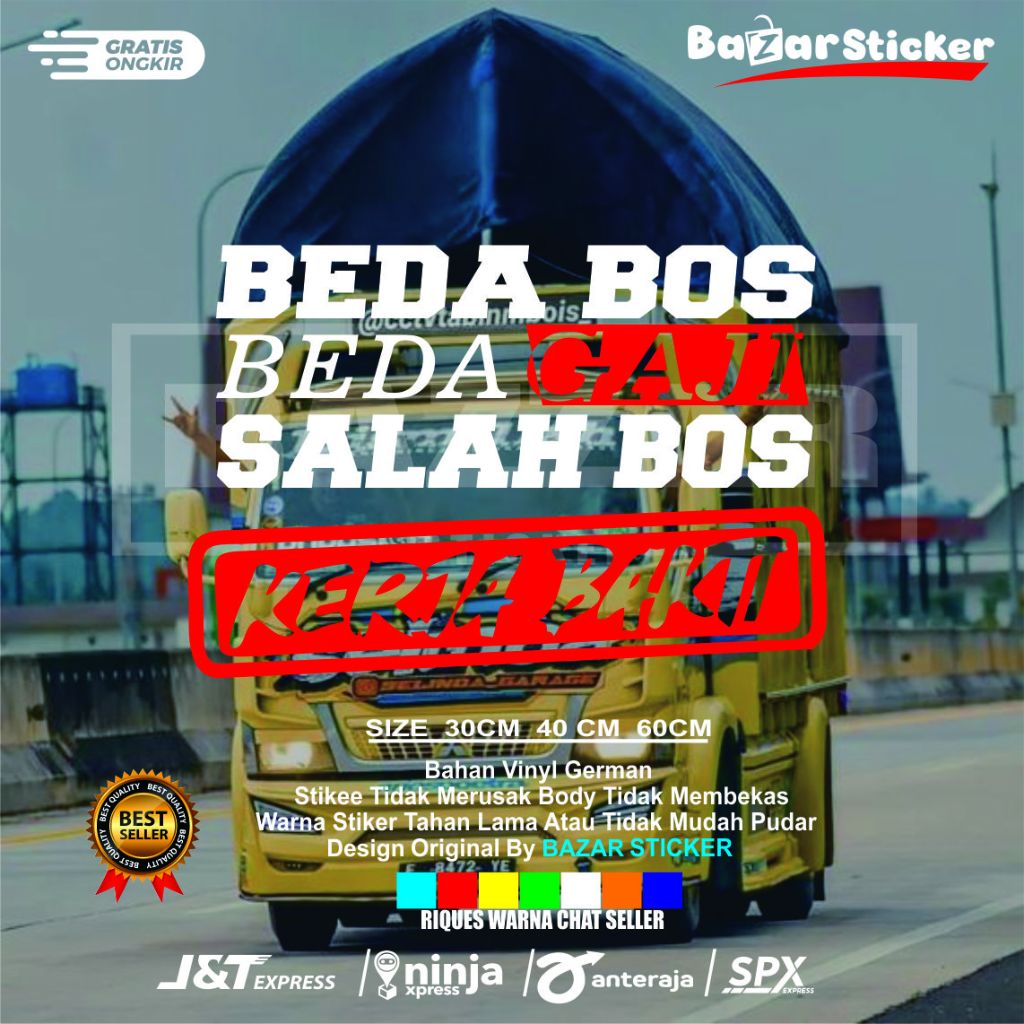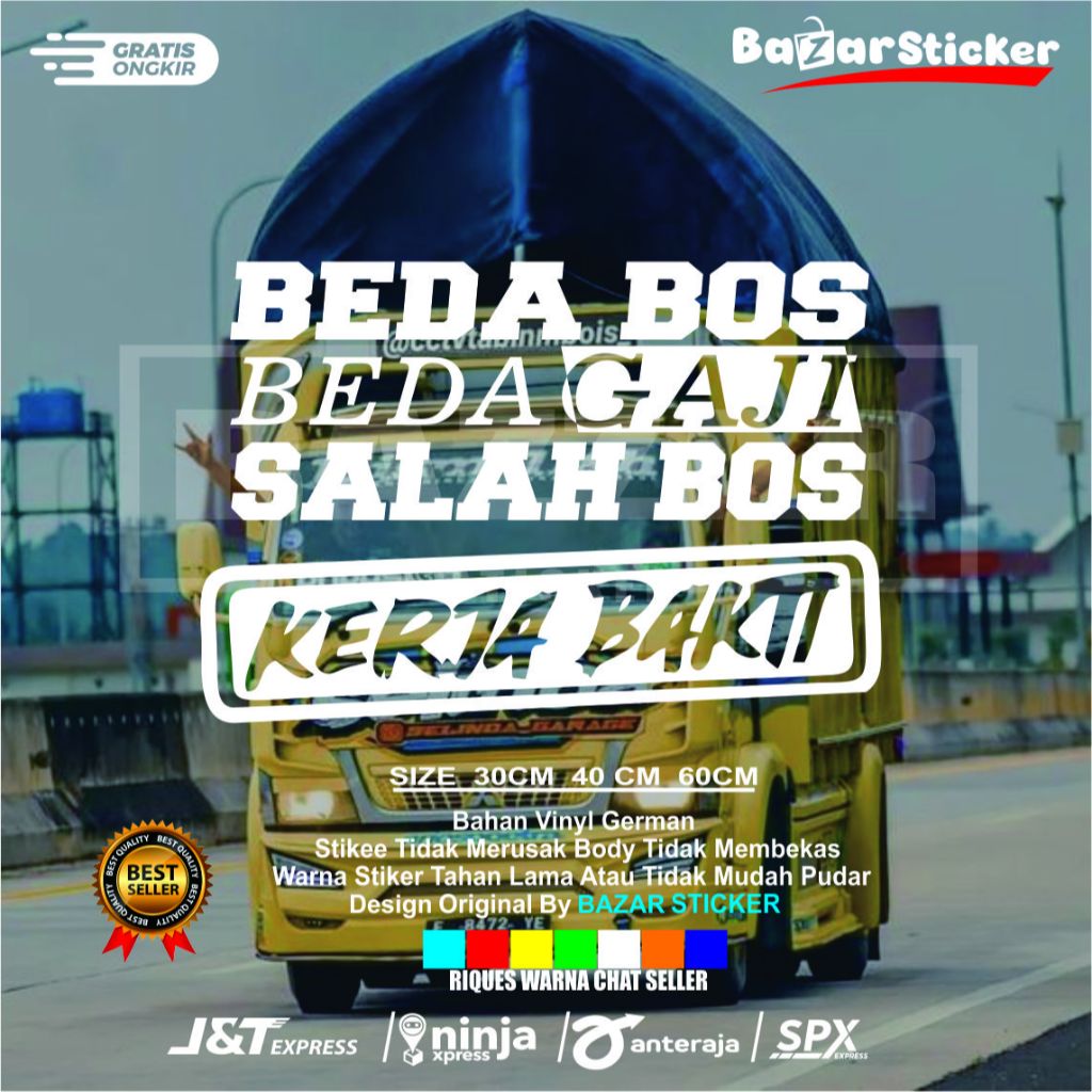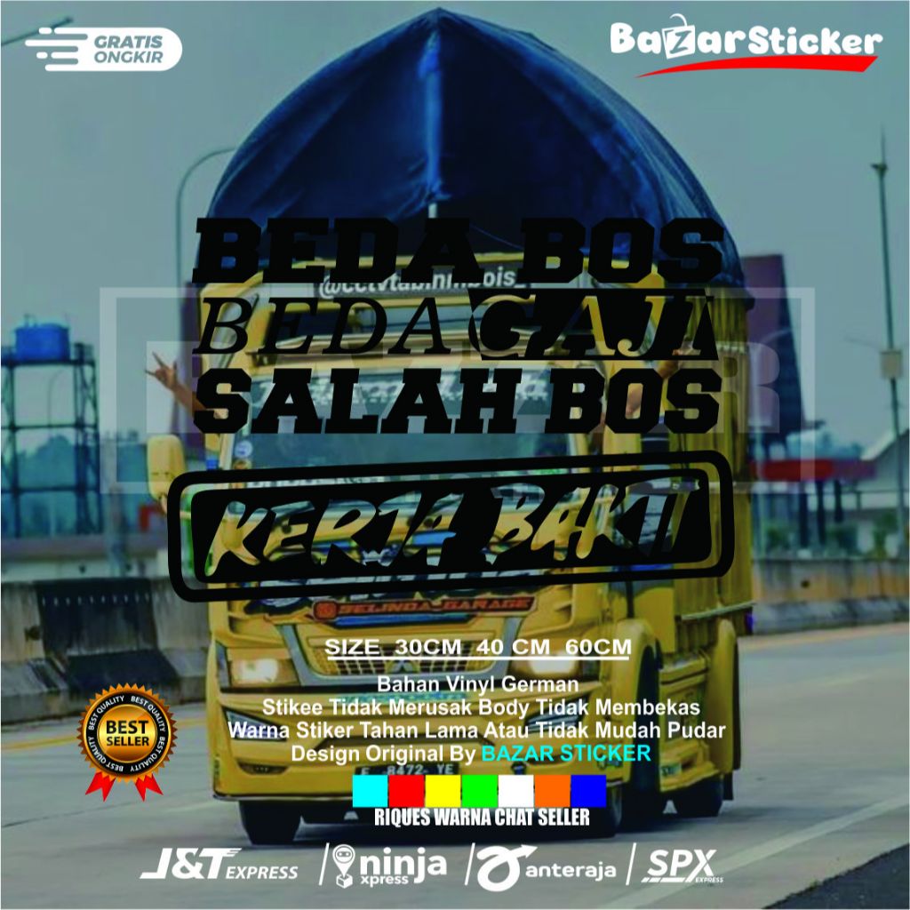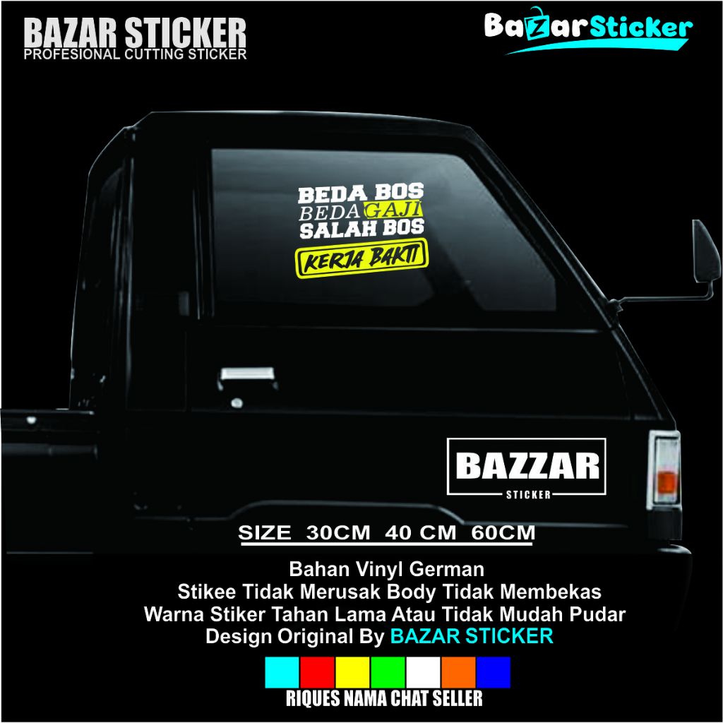 stiker kaca beda bos beda gaji salah bos kerja bakti sticker kaca mobil truk pick up