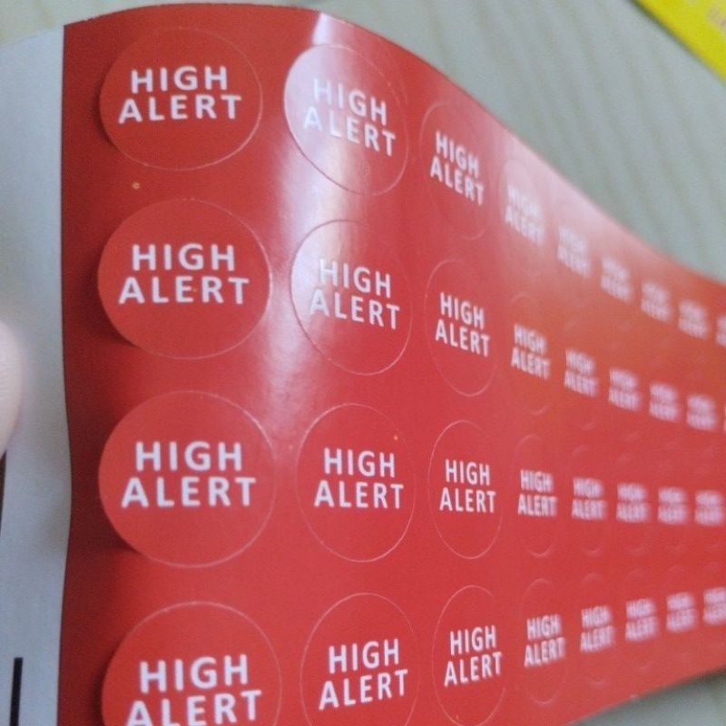 stiker label hight alert dan lasa cutting besar bulat diameter 1,5