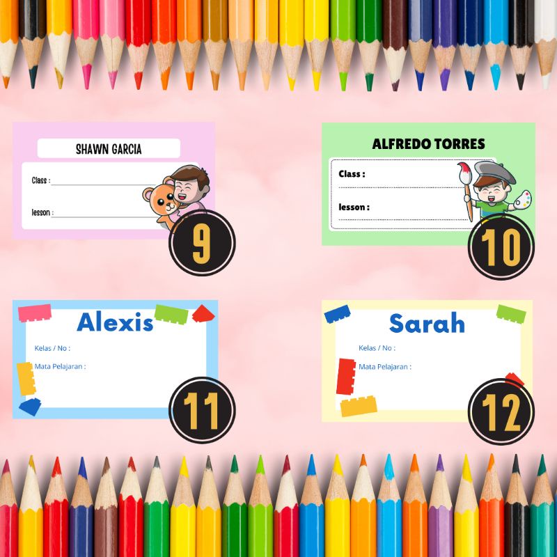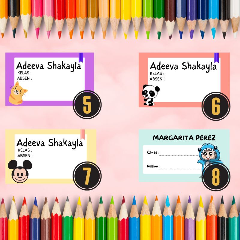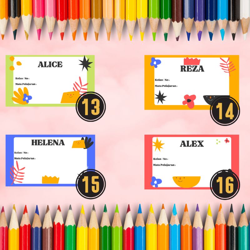 stiker label nama buku pelajaran / label nama sekolah / stiker nama sekolah / stiker label custom