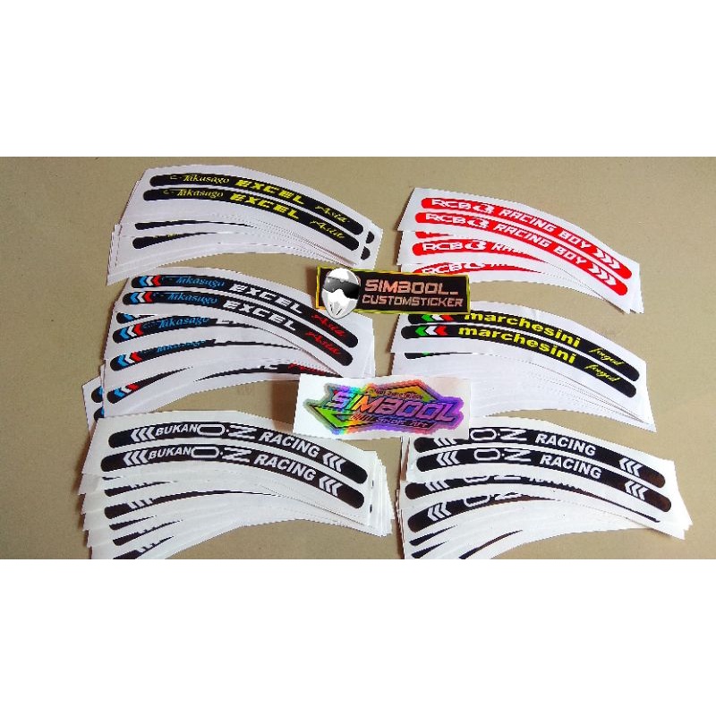stiker list velg racing boy, tk excel, marchessini, oz racing(min pembelian 10rb)