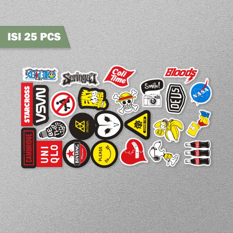 stiker pack 25pcs(ONE PIECE)stiker helm,hp,laptop,motor, anti air