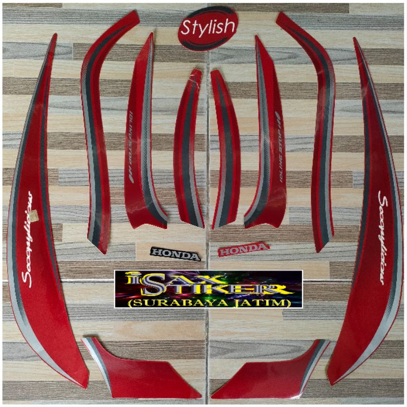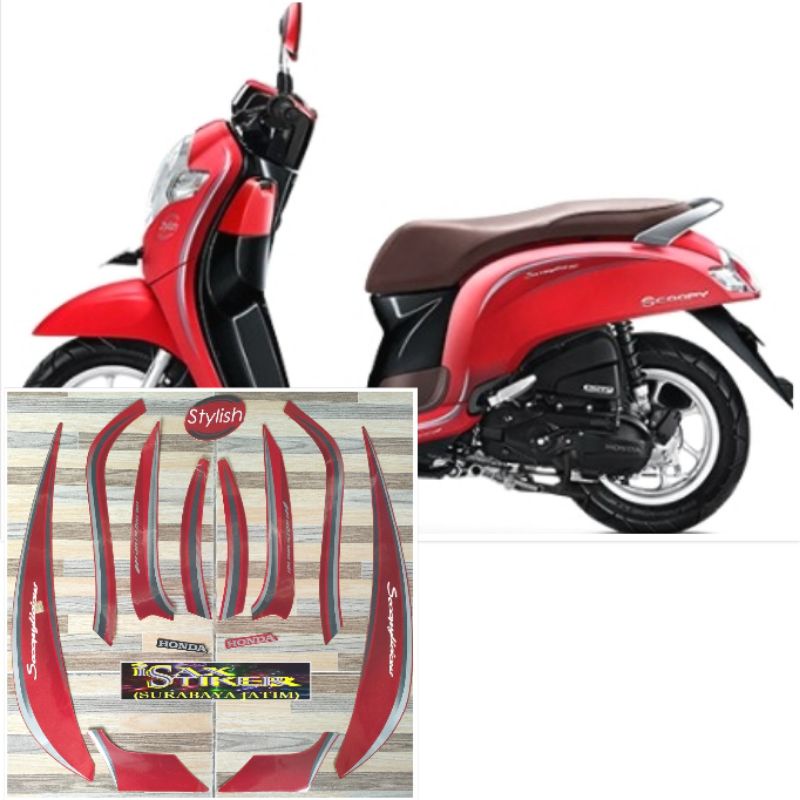 striping original Honda Scoopy stylish merah red tahun 2017 2018