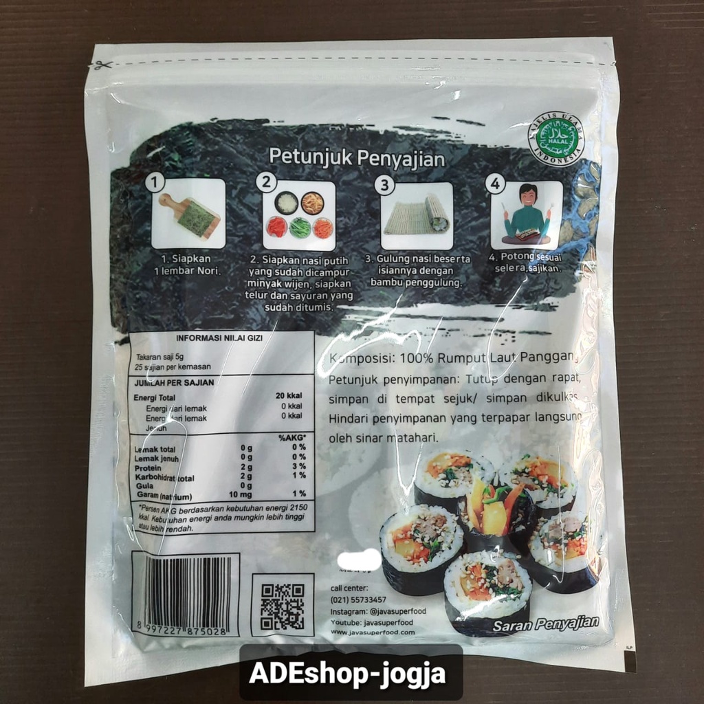 sushi nori roasted seaweed java super food rumput laut yaki panggang 50 lembar sheet