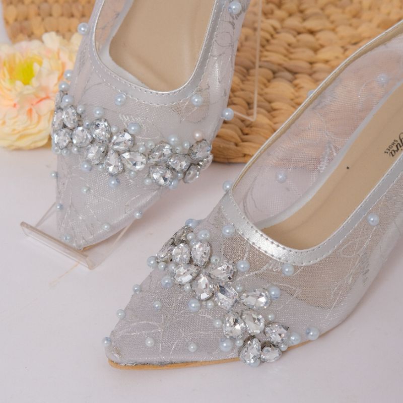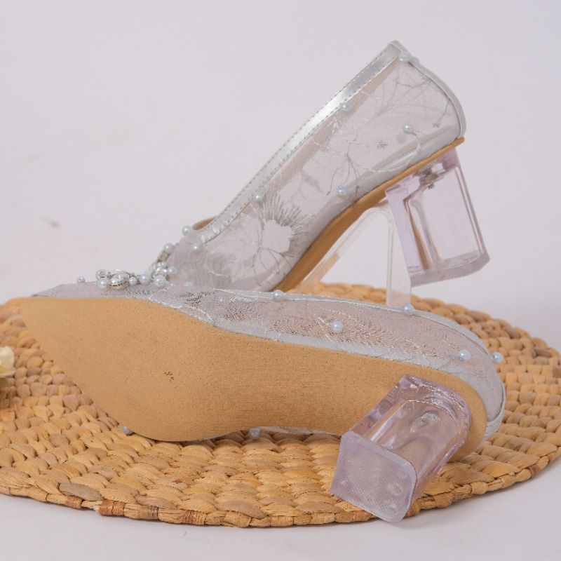 syakira sepatu wanita sepatu wedding hak kaca 7 cm silver