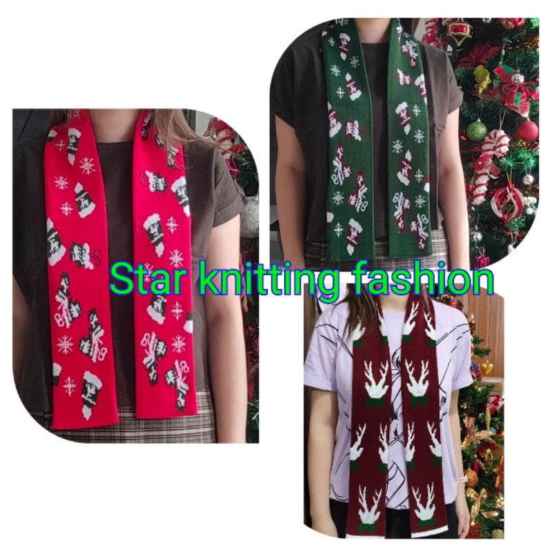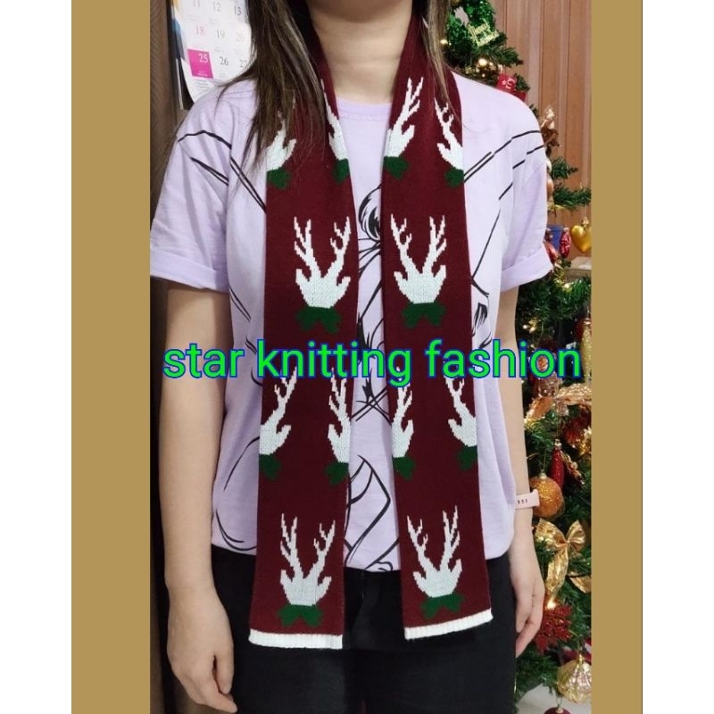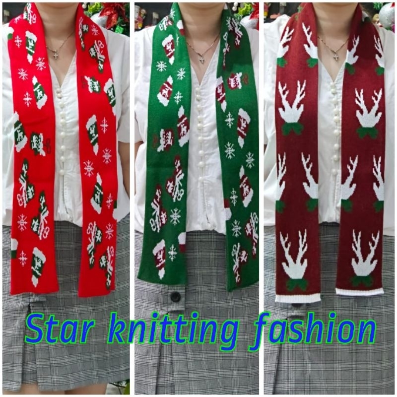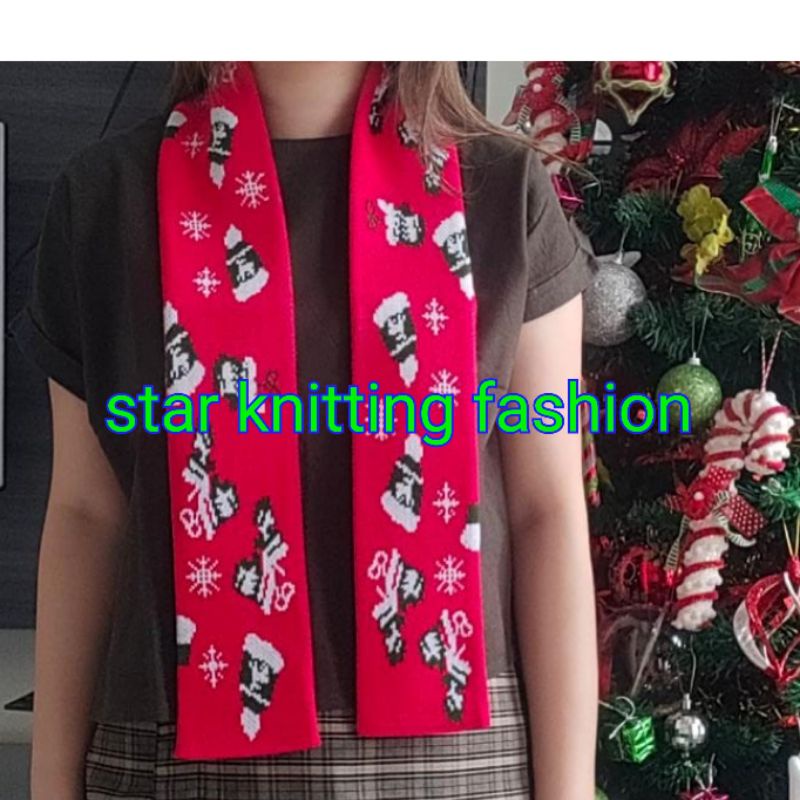 syal syall shawl scraf natal christmas motif topi santa merah dan hijau
