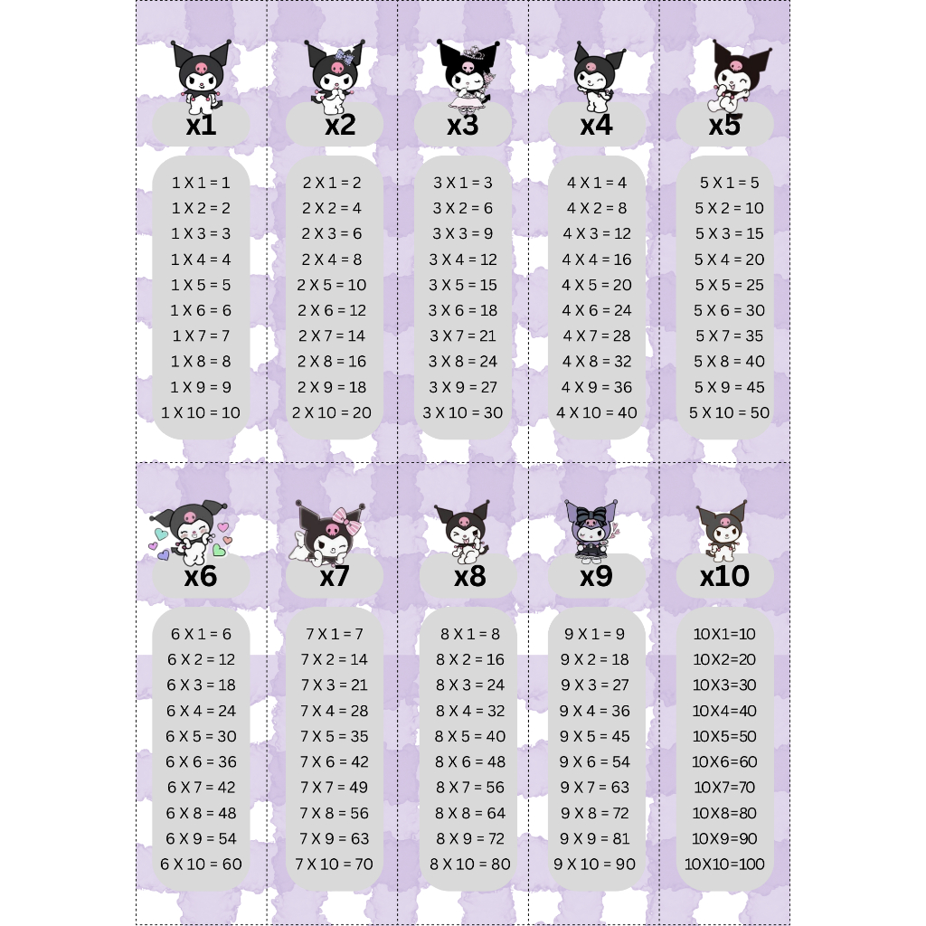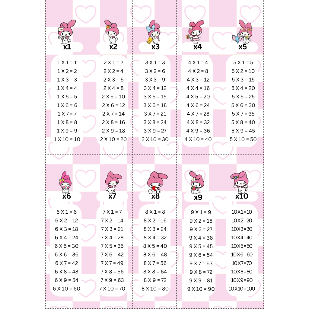 tabel perkalian, pembagian, pertambahan, pengurangan