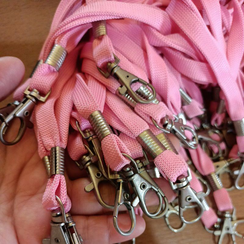 tali nametag warna pink-tali plastik ujian-tali name tag pengait besi (ecer)