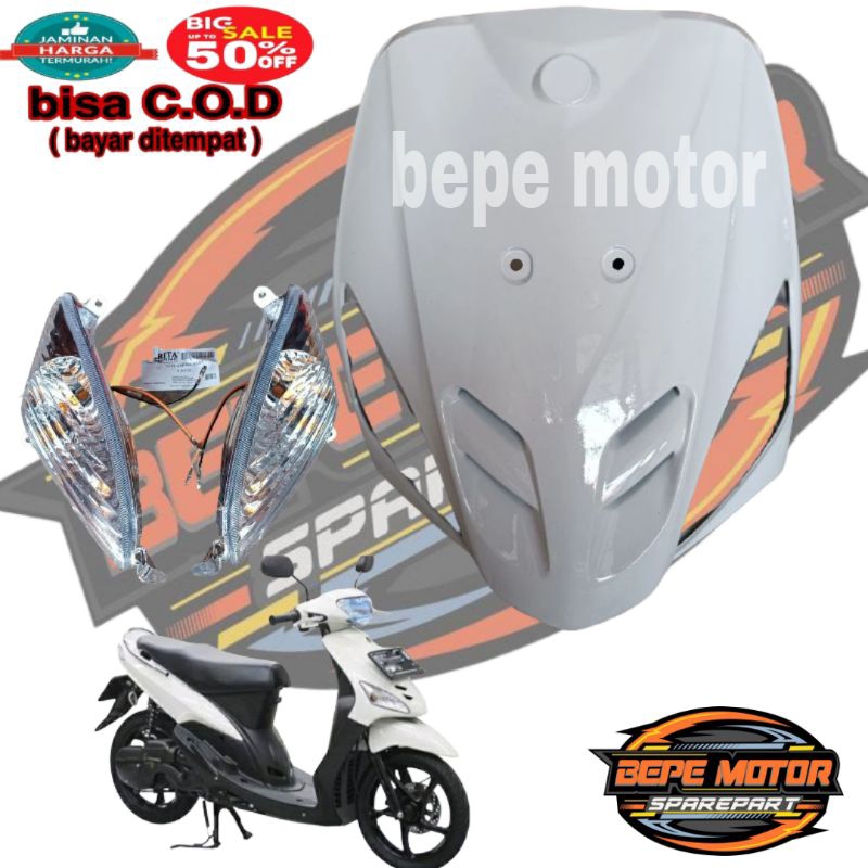 tameng dasi depan dan lampu sen yamaha mio sporty mio lama warna putih - tameng dan sen mio sporty mio 5tl warna putih