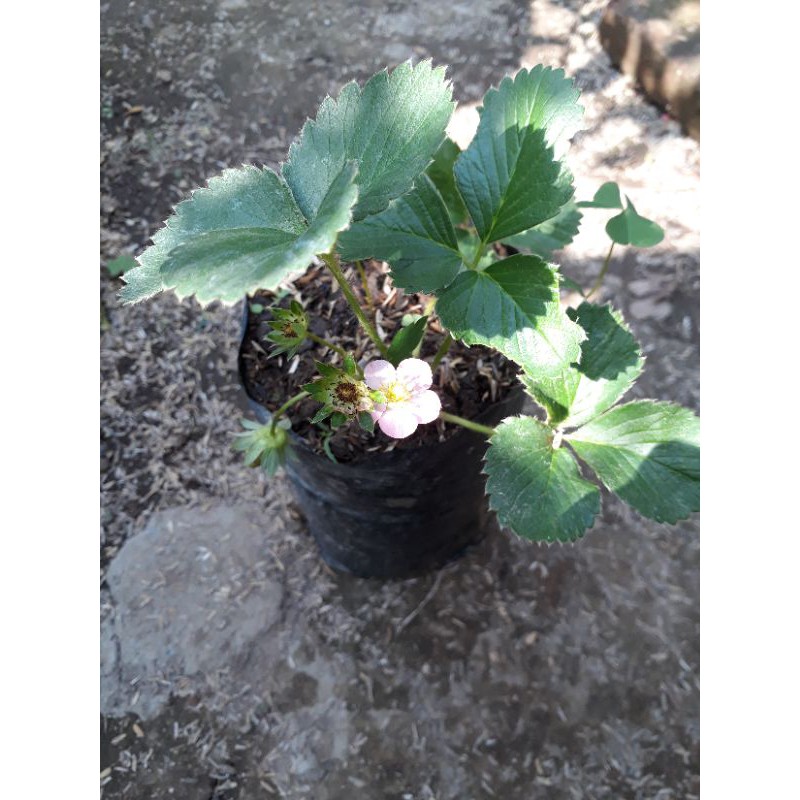 tanaman buah strawberry merlan sudah berbunga pink sangat cantikkkkkk