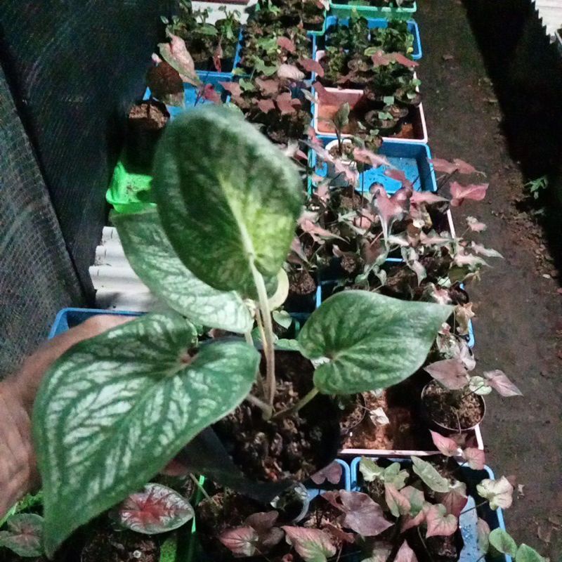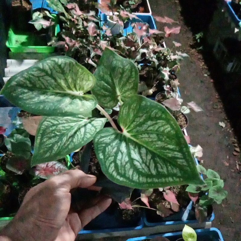 tanaman bunga caladium white bone