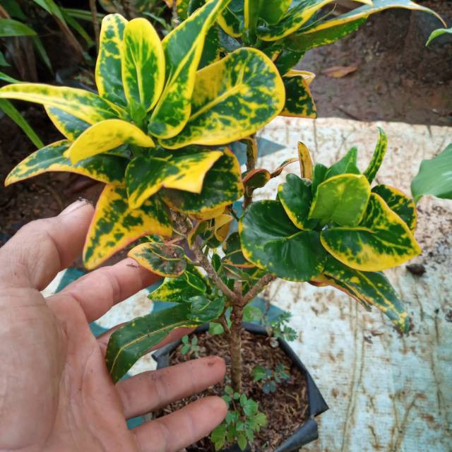 tanaman hias puring jengkol - pohon puring - puring jengkol hijau strip kuning