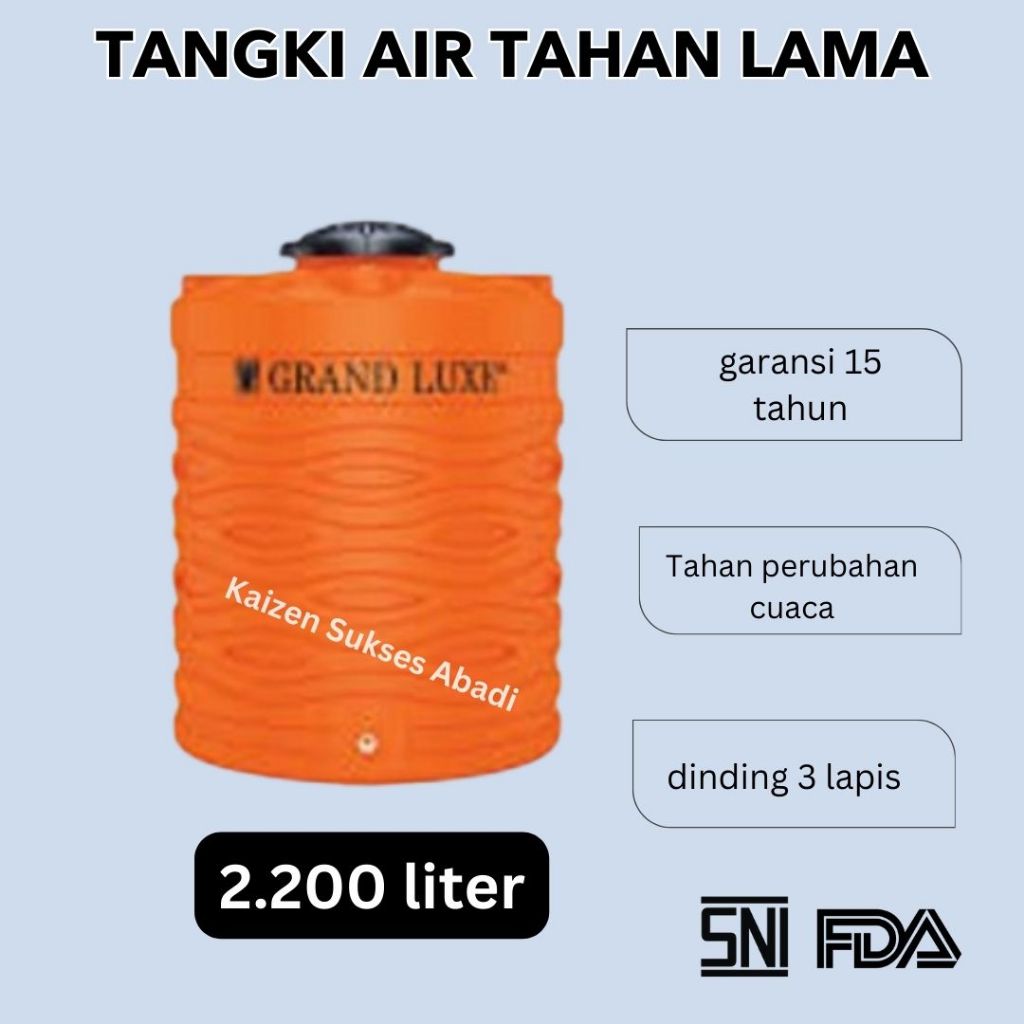 tandon tangki toren air plastik merek grand luxe 2200 2000 liter kualitas penguin profil tank termurah terdekat di surabaya sidoarjo gresik jawa timur malang kediri banyuwangi jember blitar tuban