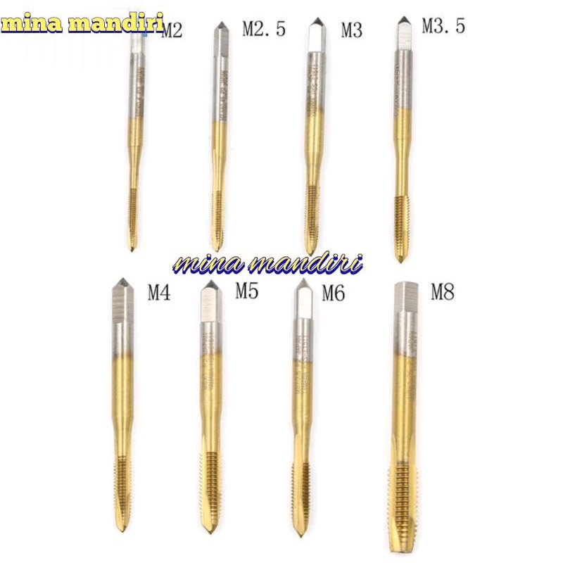 tap.hand tap M2 M2.5 M3 M3.5 M4 M5 M6 M8 Coating Kuning cocok utk stainles & besi