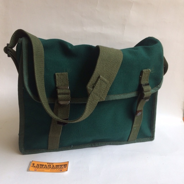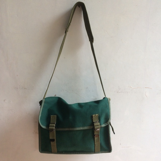 tas kanvas slempang selempang jadul kuno vintage lawas tentara kulit stb postman bag hijau