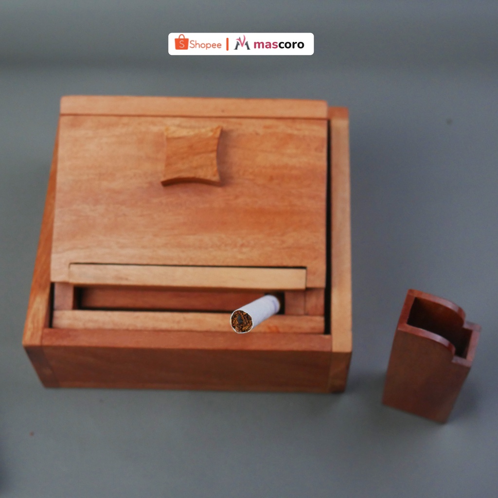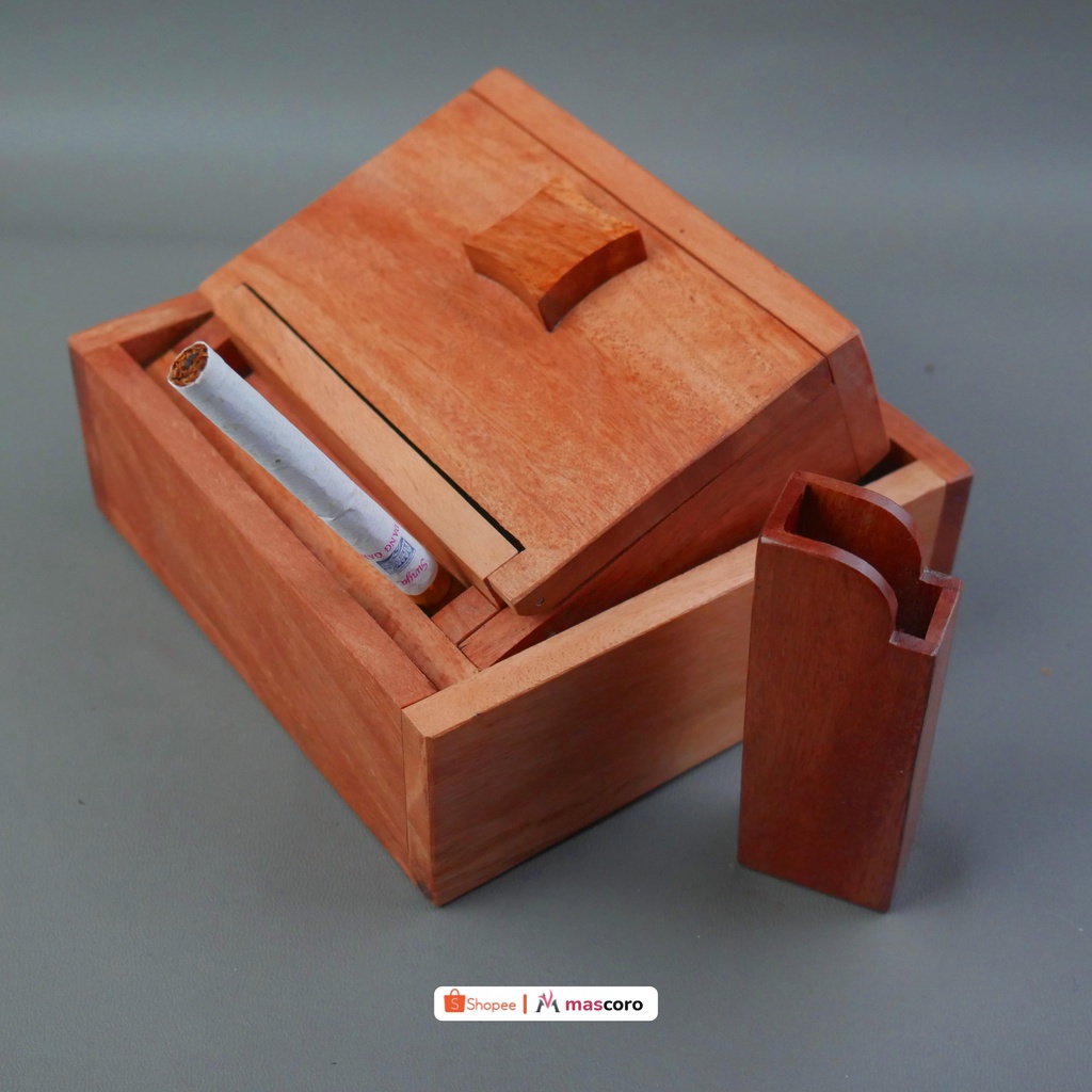 tempat rokok dan korek - kotak rokok keren dan unik dari kayu - box roko berdiri