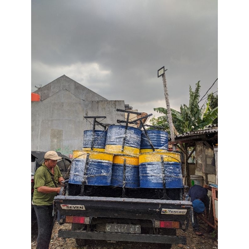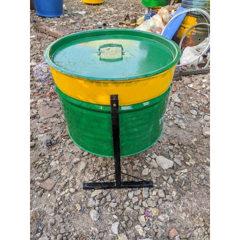 tempat sampah besi 100 liter+tiang+tutup/tong sampah gantung
