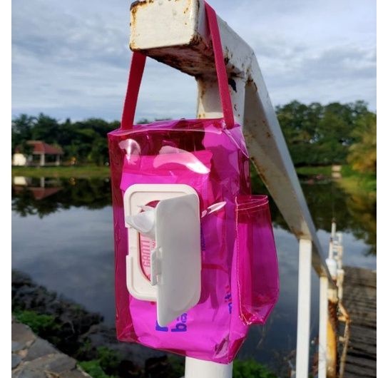 tempat tisu 3 in 1 bahan mika transparan warna pink tisu basah tisu kering 50 sheet hand sanitizer