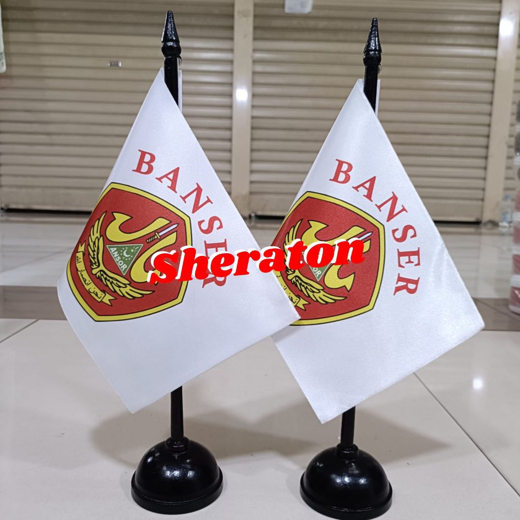 tiang kayu meja+bendera ANSOR