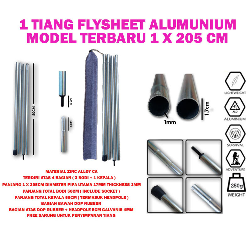 tiang steel galvanis flysheet penyanggah pilar outdoor - Tiang Flysheet Tiang Frame/ Tinggi 200 Cm