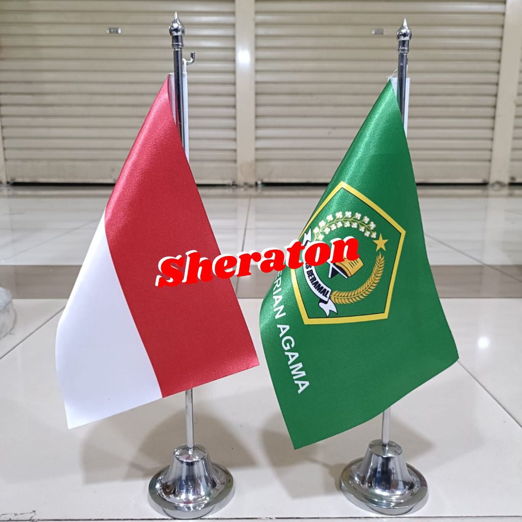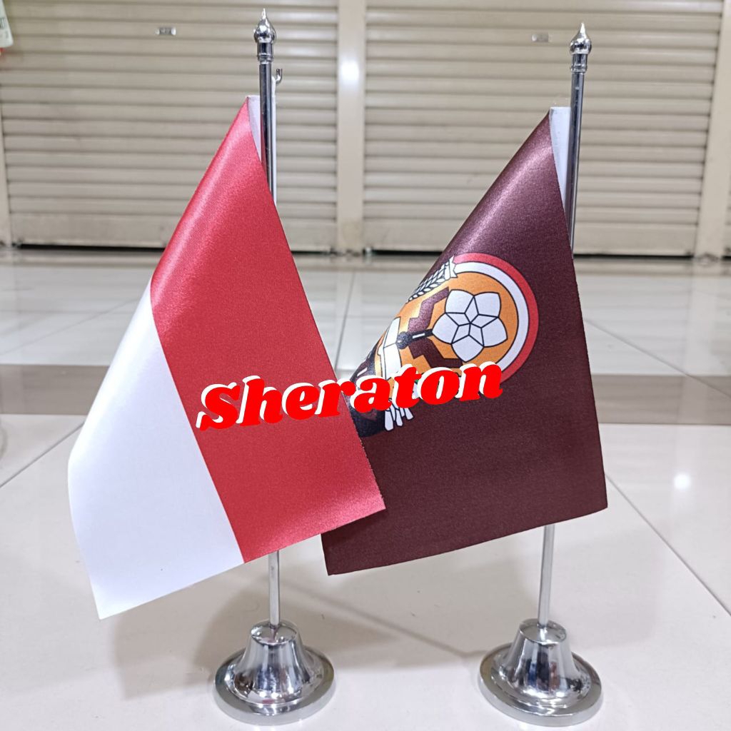 tiang stenlis meja+bendera ANSOR+Indonesia