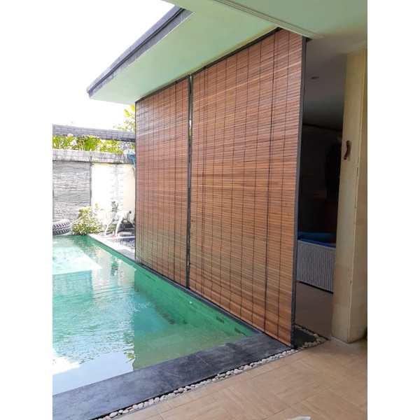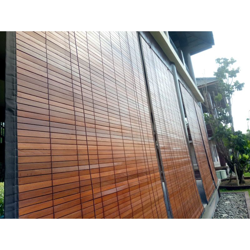 tirai kayu anti air L 2,5m x T 2,5m | tirai kayu waterproof | krey kayu dengan lapisan kain waterproof | krey kayu waterproof | krei kayu lapis kain | Kerai kayu outdoor | krey kayu solid | dekorasi | home decor | handmade | krei kayu lapis kain