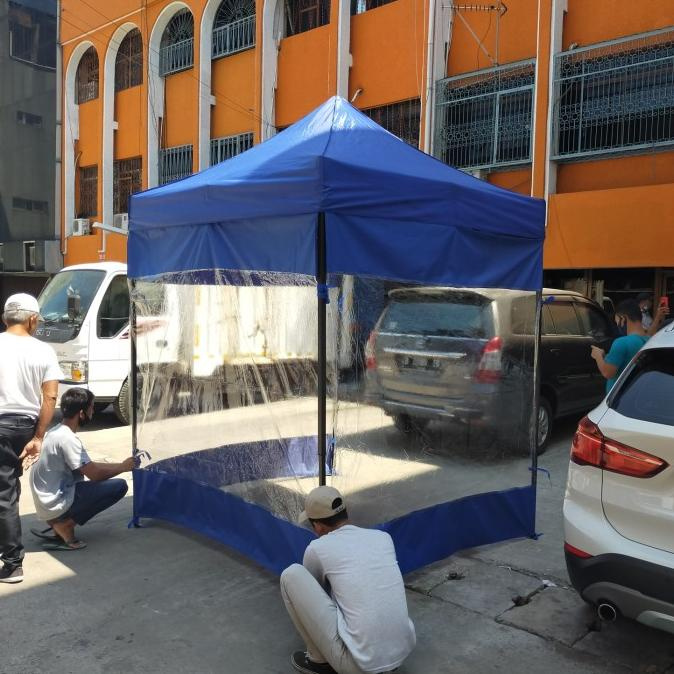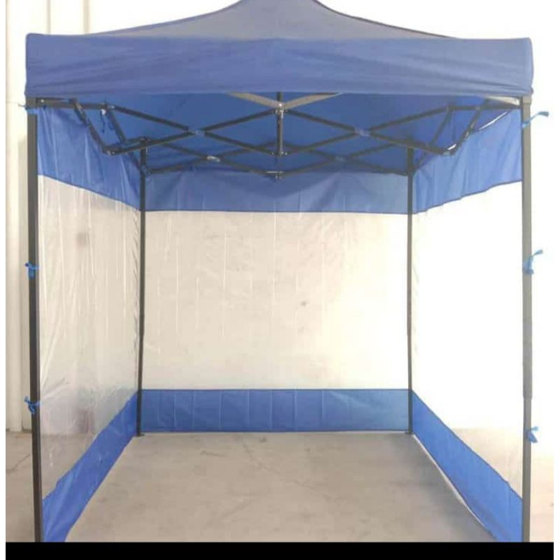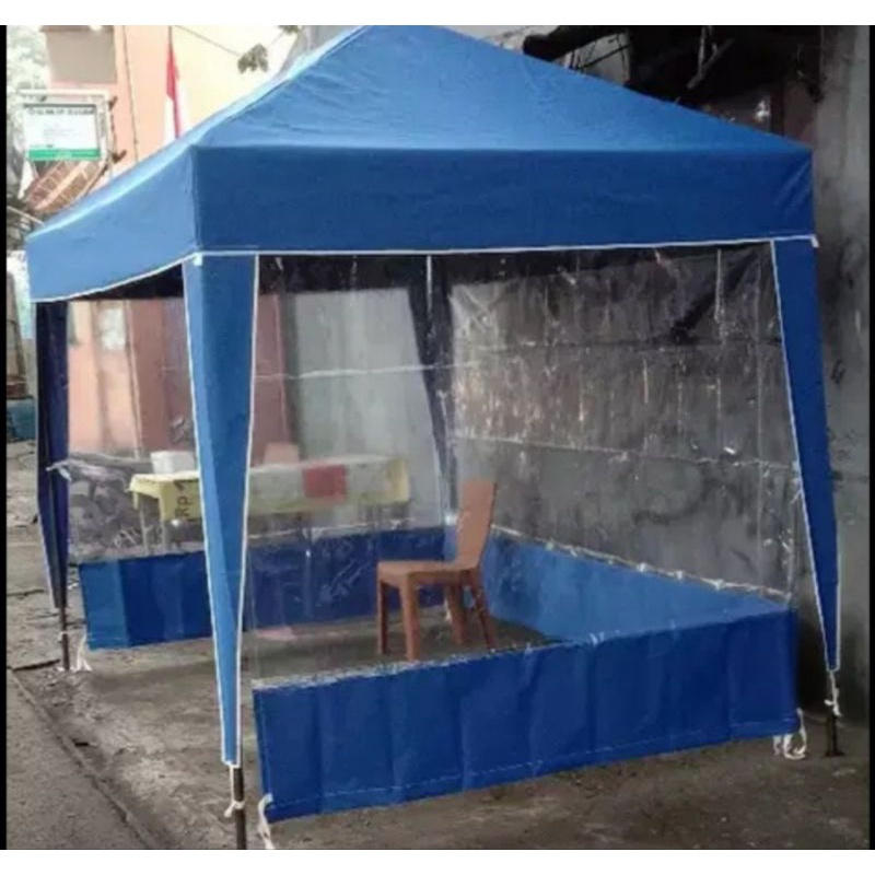 tirai tenda dinding tenda tutup samping tenda warna biru+mika bening HANYA TIRAI SAJA (BUKAN ATAP/RANGKA)