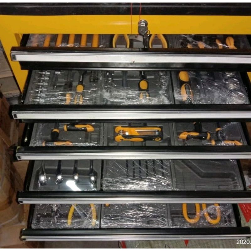 toolkit set isi 221 pcs tool box isi lengkap tool trolley tempat penyimpanan perkakas plus isi lemari penyimpanan kunci toolbox 7 laci
