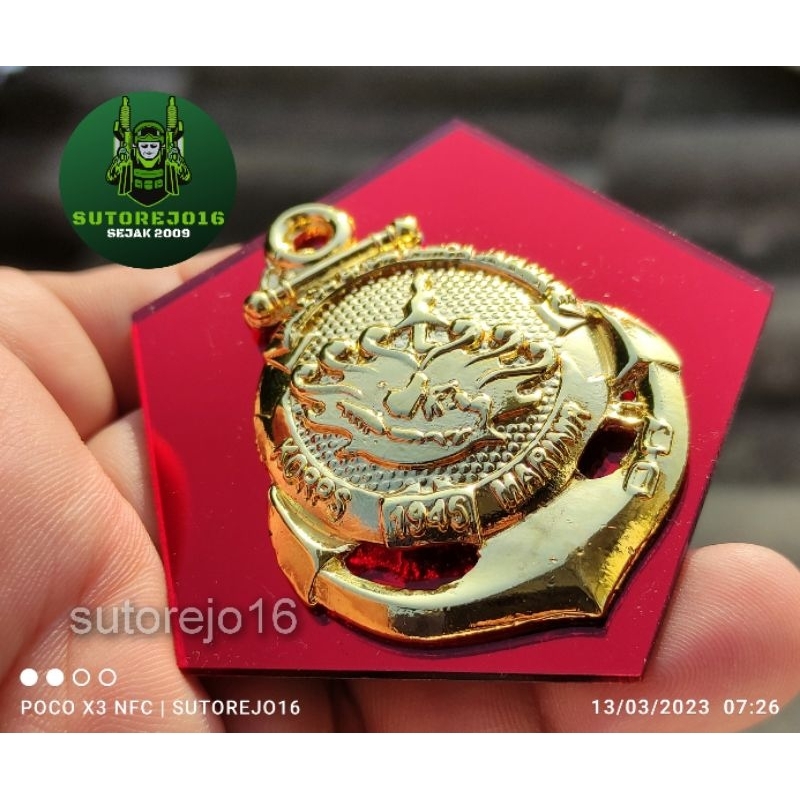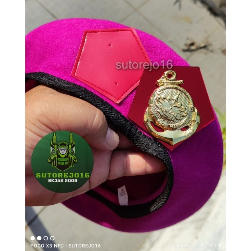 topi baret marinir kacamata dan emblem baret marinir latar mika akrilik miror