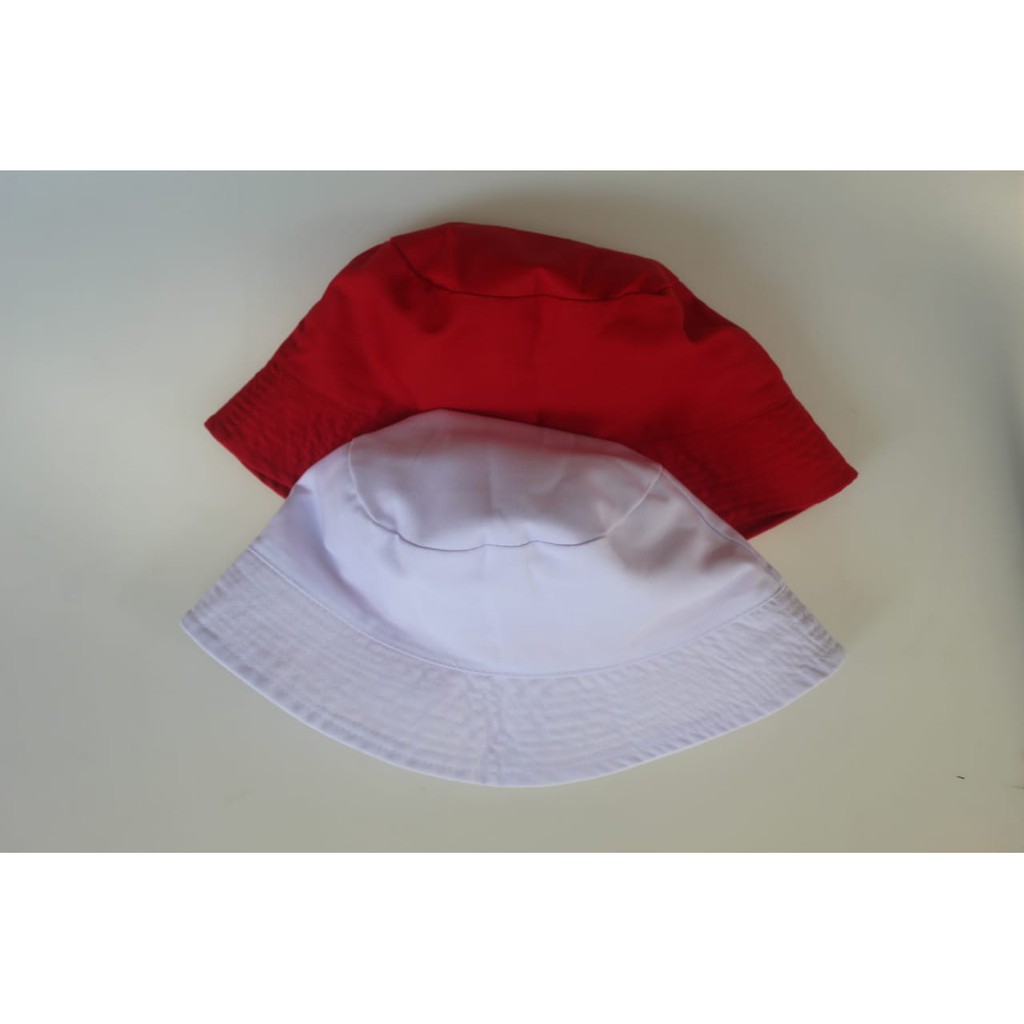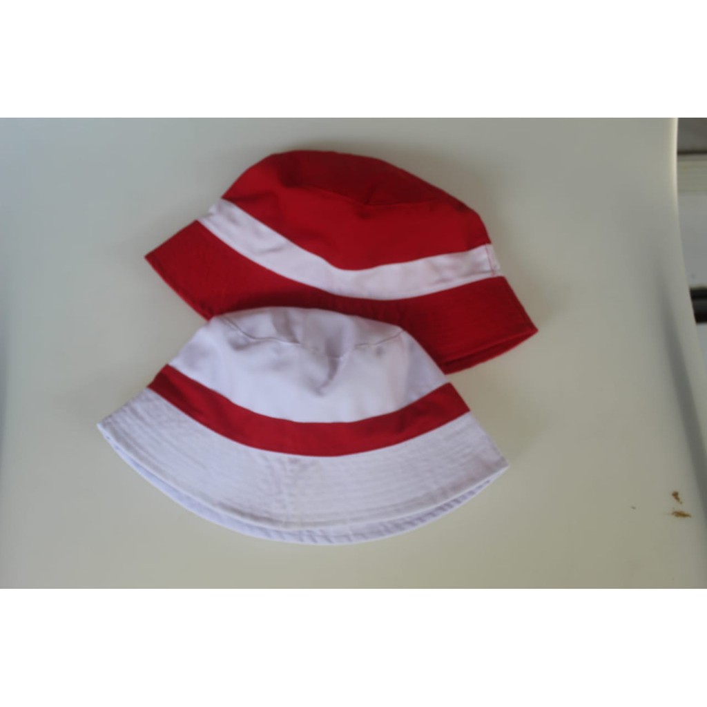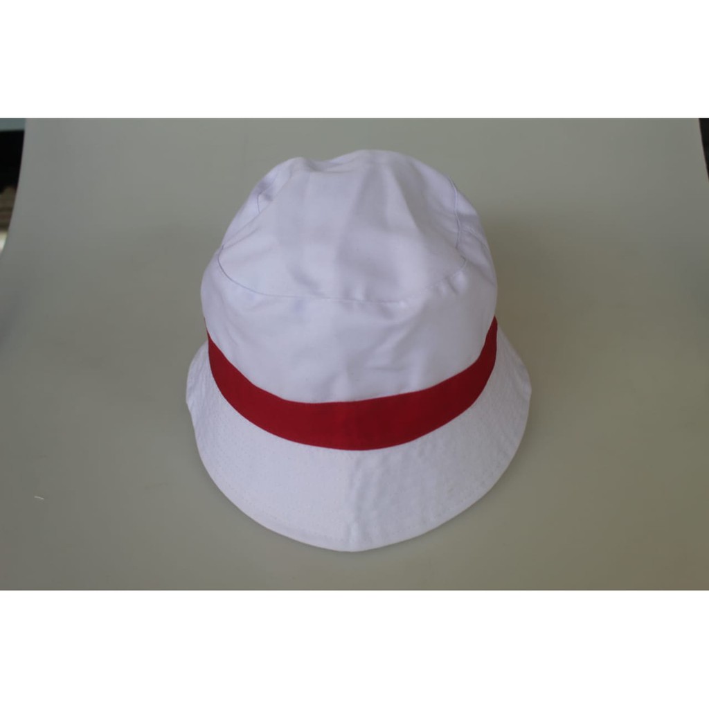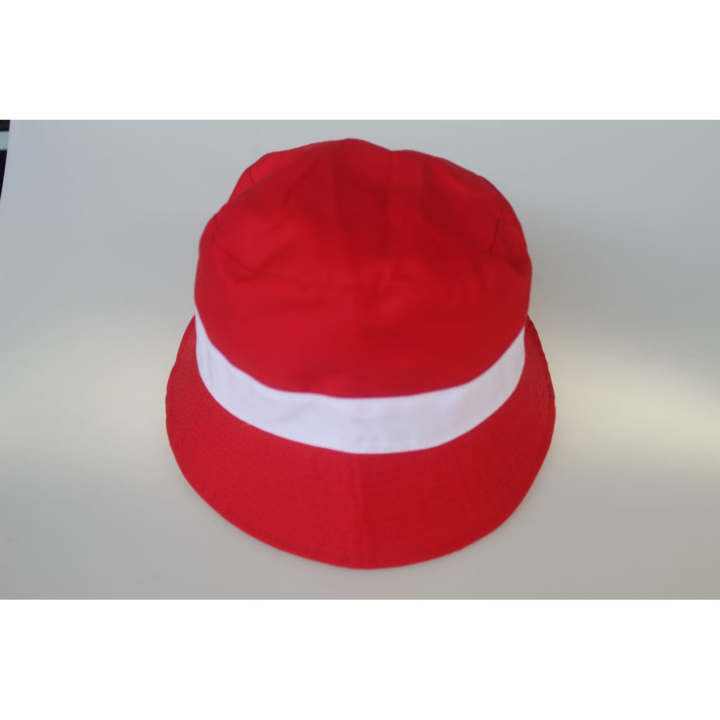 topi bucket hat putih variasi merah topi bulat/merah variasi list putih Diskon