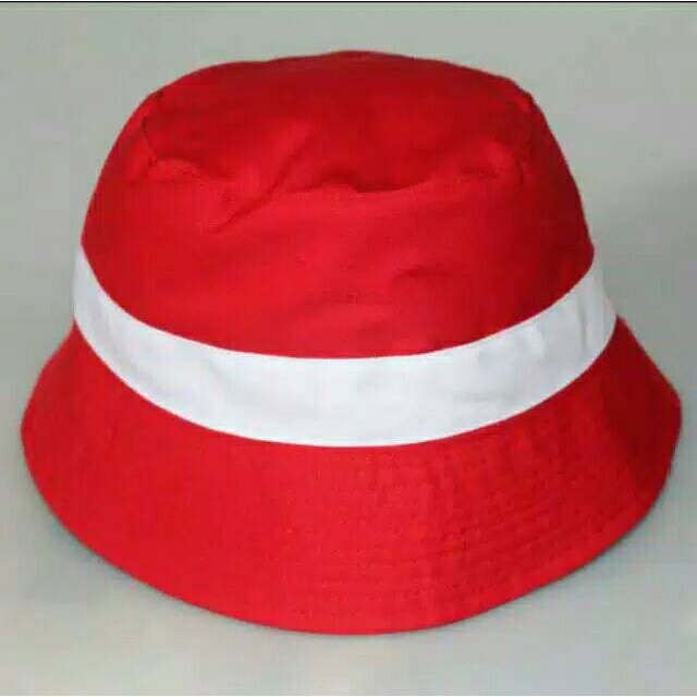 topi bucket hat putih variasi merah topi bulat pernak pernik 17 agustusan