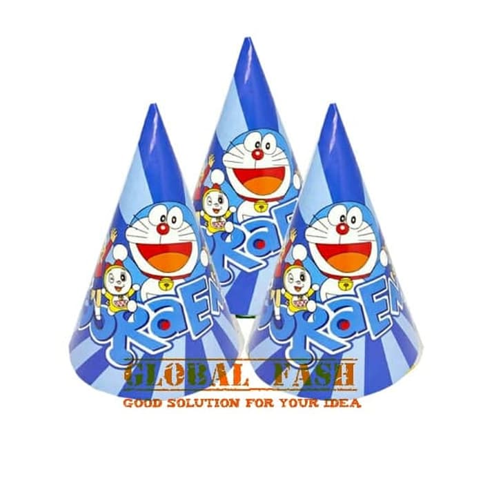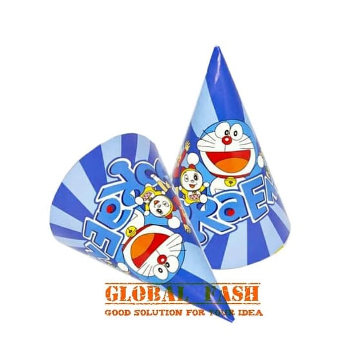 topi kerucut doraemon / topi ultah anak / topi ulang tahun doraemon