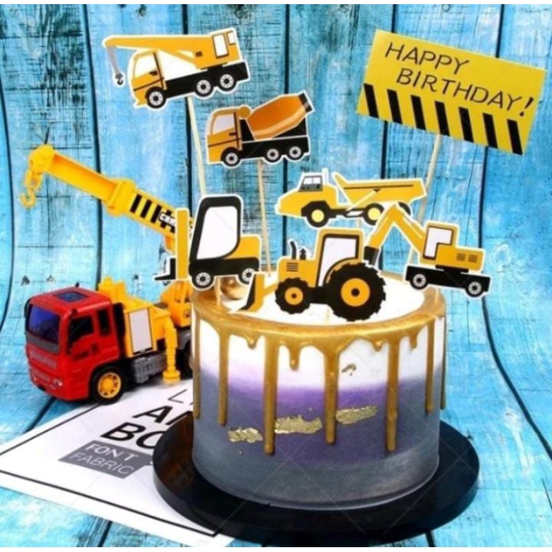 topper cake eskavator construction truck excavator truk rambu crane dekorasi kue tumpeng