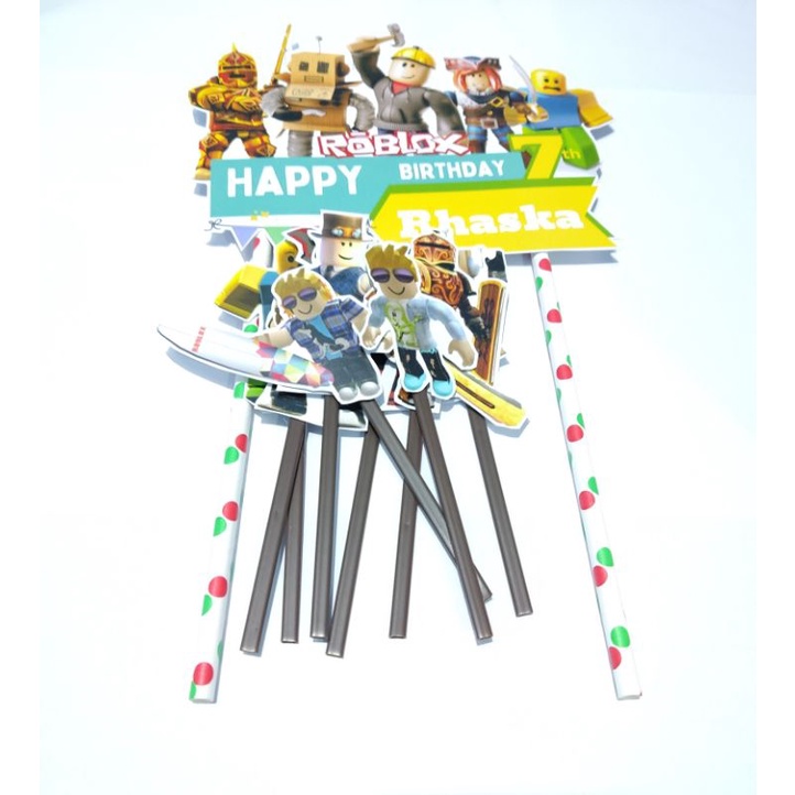 topper cake roblox / hiasan kue happy birthday