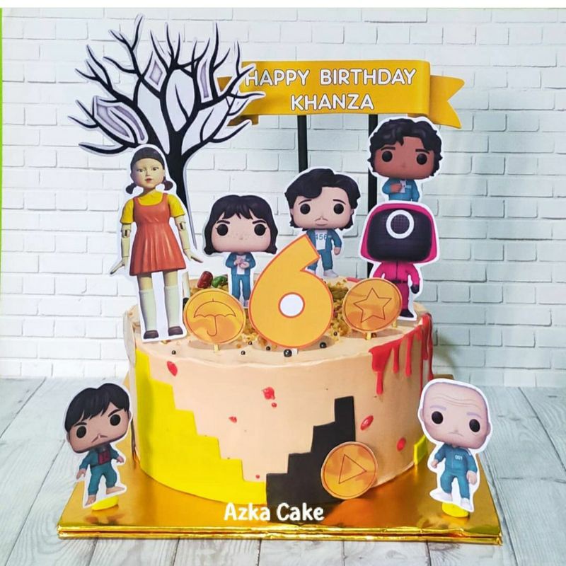 topper cake squid game/toper squid game murah/hiasan kue squid game