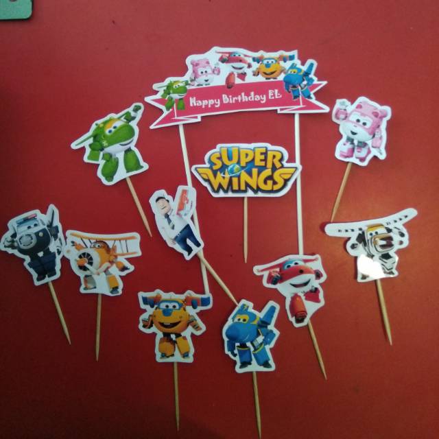 topper hiasan kue super wings pesawat