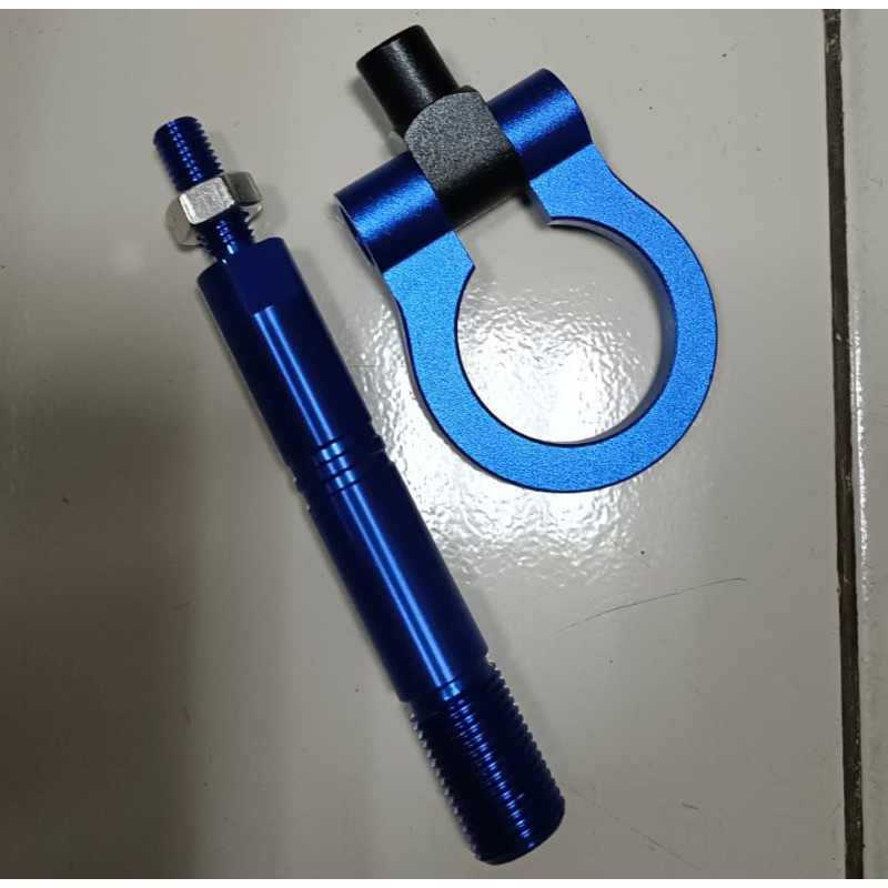 towing hook besi mobil avanza xenia warna biru + towing kain strap biru universal (1 paket)