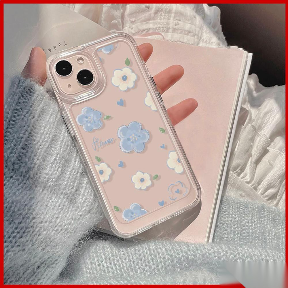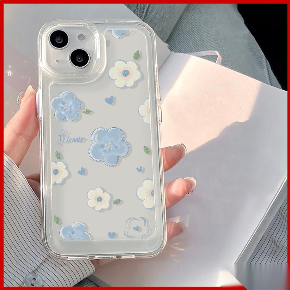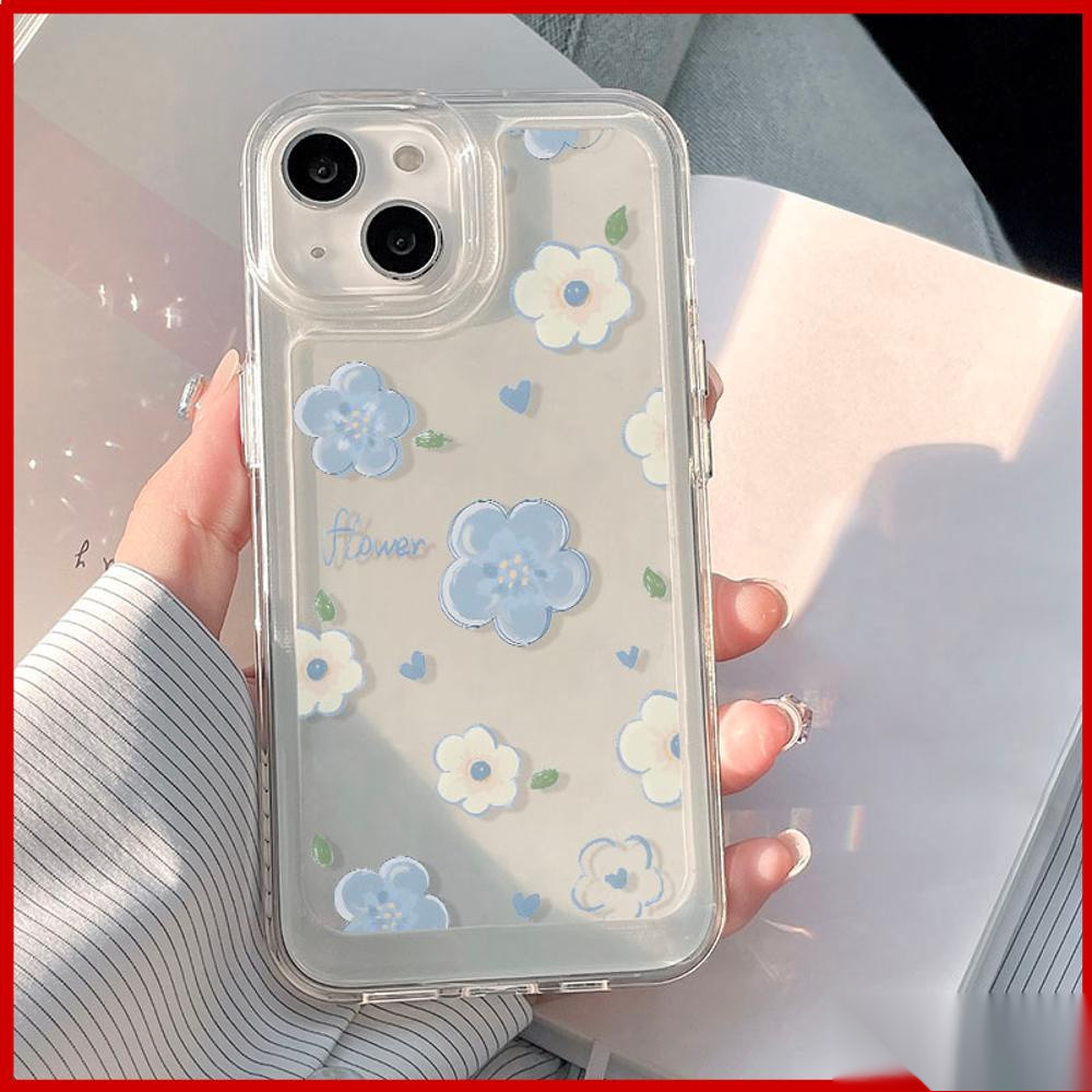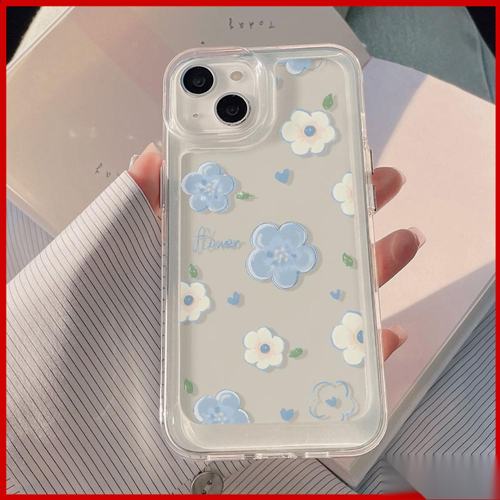 transparan soft case hp Iphone 17 Pro Max 17 Air 16E 16 Pro max 16 Plus 15 PRO MaX 11 PRO MaX 11 13 15 casing IP xs max 7 PLUS x xr 8 PLUS 14 13 Pro Max TPU Shockproof casing aesthetic biru putih bunga