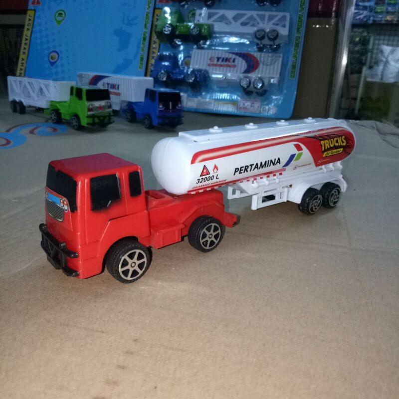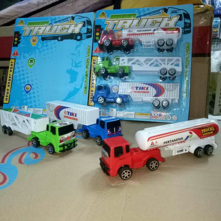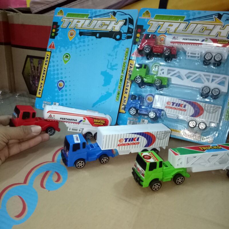 truck kontainer isi 3 mobil (mobil minyak, box, pengangkut mobil)